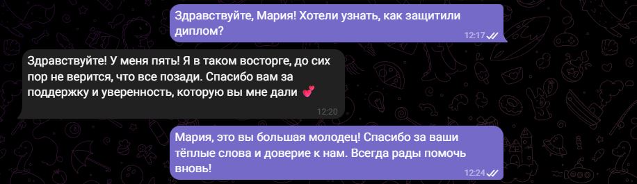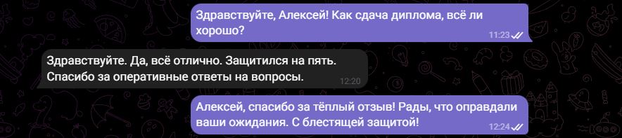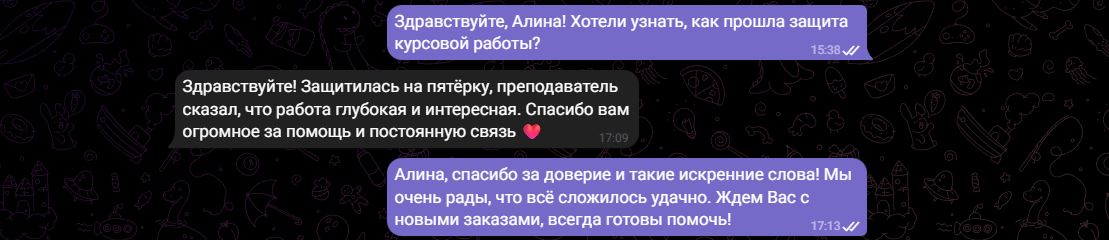 Мы гарантируем полную конфиденциальность. Ваши данные (ФИО, название вуза, тема работы) известны только автору. Кроме того, каждая работа пишется с нуля под конкретного студента, что исключает «плагиат готовых работ», которые есть в базе преподавателя.