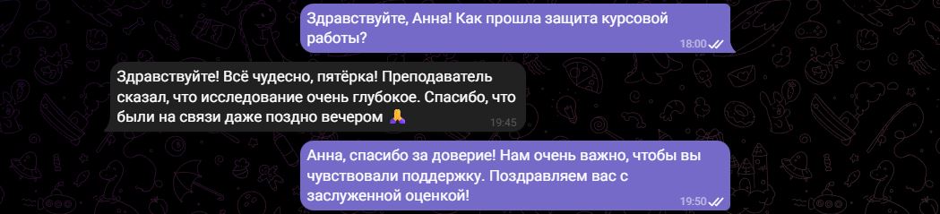 Спорные ситуации решает менеджер. Мы всегда на стороне клиента, если правки соответствуют изначальному техническому заданию. Если вы просите полностью переписать работу на другую тему — это уже новый заказ. Мы всегда ищем компромисс, чтобы вы остались довольны результатом.